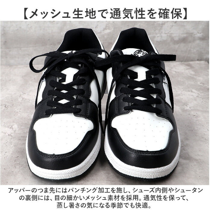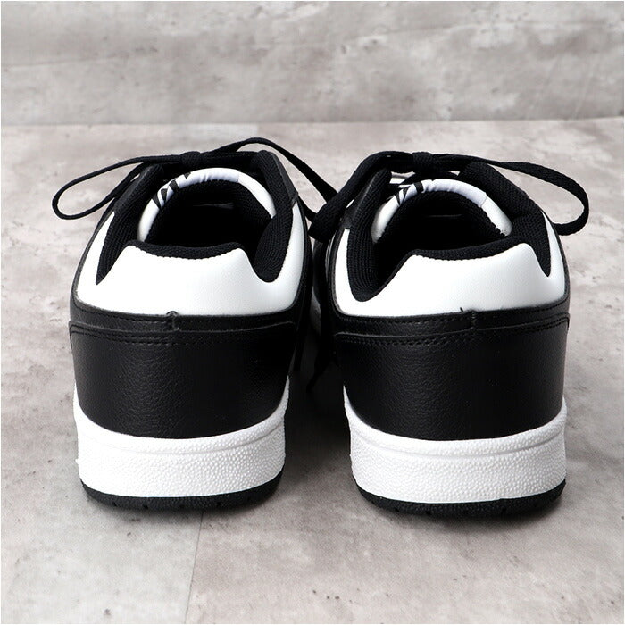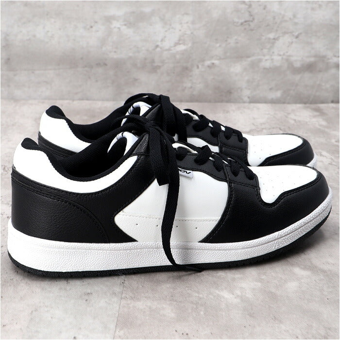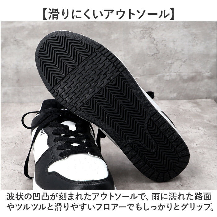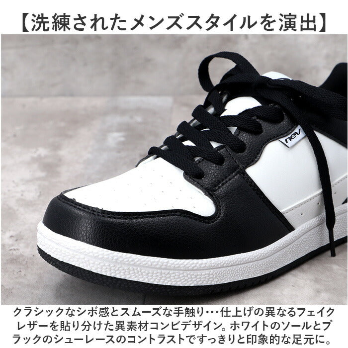 ・クラシックなシボ感とスムーズな手触り・・・仕上げの異なるフェイクレザーを貼り分けた異素材コンビデザイン。ホワイトのソールとブラックのシューレースのコントラストですっきりと印象的な足元に。