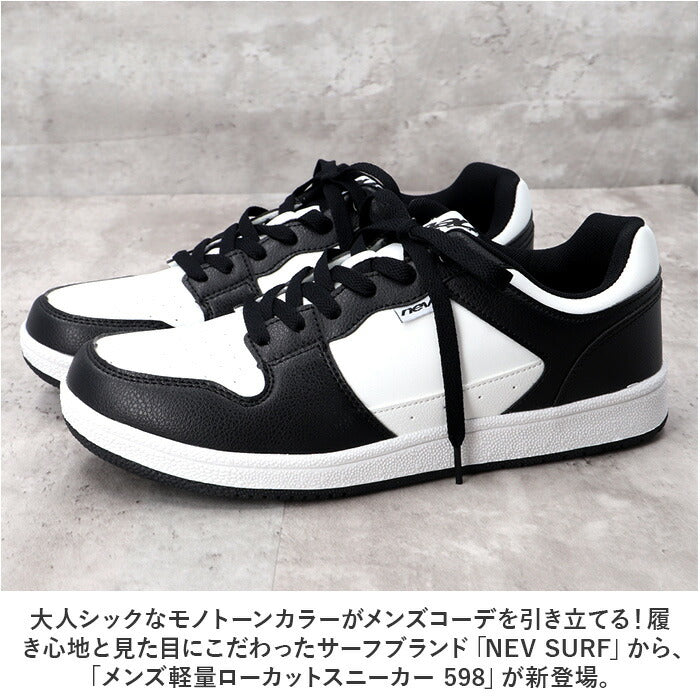 ・大人シックなモノトーンカラーがメンズコーデを引き立てる!履き心地と見た目にこだわったサーフブランド「NEV SURF」から、「メンズ軽量ローカットスニーカー 598」が新登場。