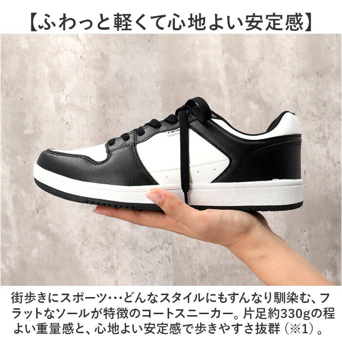 ・街歩きにスポーツ・・・どんなスタイルにもすんなり馴染む、フラットなソールが特徴のコートスニーカー。片足約330gの程よい重量感と、心地よい安定感で歩きやすさ抜群(※1)。