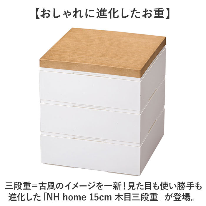NH home エヌエイチホーム 弁当箱 三段 小さめ 通販 日本製 国産 お重箱 重箱 御重 ランチボックス お弁当箱 三段重箱 15cm 木目 シンプル 無地 運動会 おしゃれ 行楽 スタイリッシュ