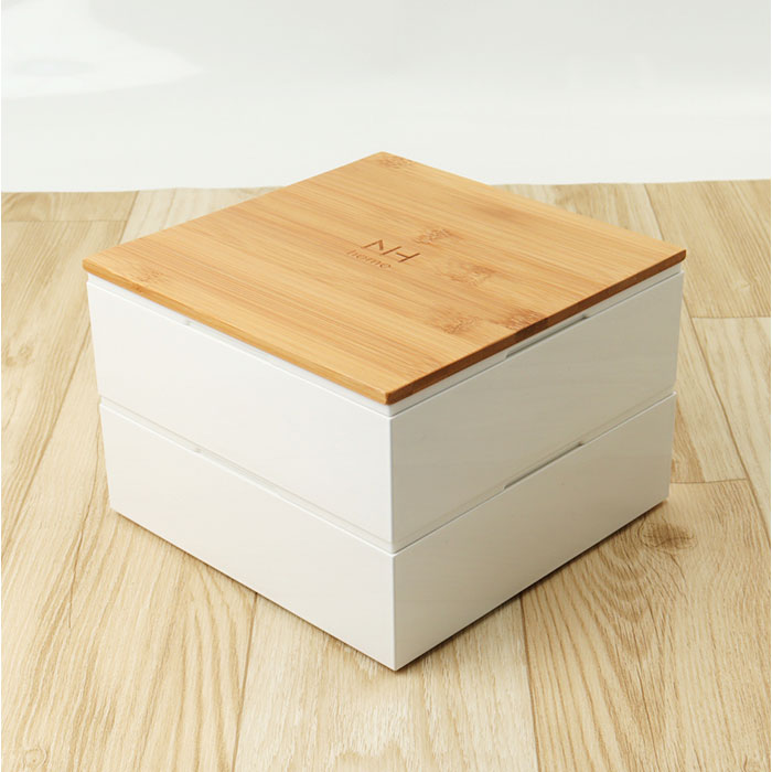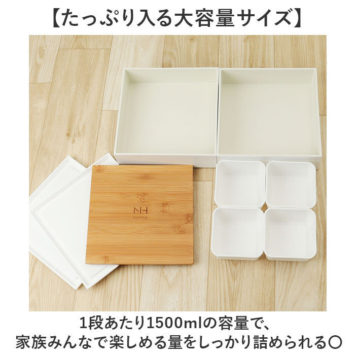 NH home エヌエイチホーム 弁当箱 二段 通販 日本製 国産 お重箱 重箱 御重 ランチボックス お弁当箱 二段重箱 18cm バンブー シンプル 仕切り 仕切りカップ 無地 運動会 おしゃれ