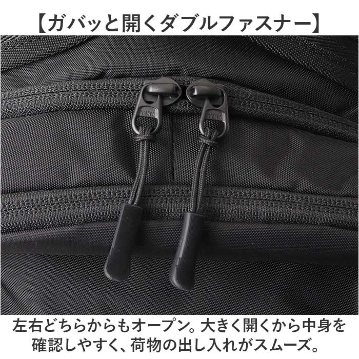 ・左右どちらからもオープン。大きく開くから中身を確認しやすく、荷物の出し入れがスムーズ。