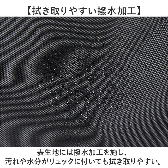 ・表生地には撥水加工を施し、汚れや水分がリュックに付いても拭き取りやすい。