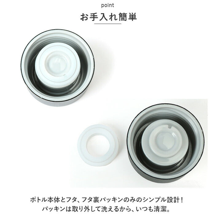 ・ボトル本体とフタ、フタ裏パッキンのみのシンプル設計!パッキンは取り外して洗えるから、いつも清潔。