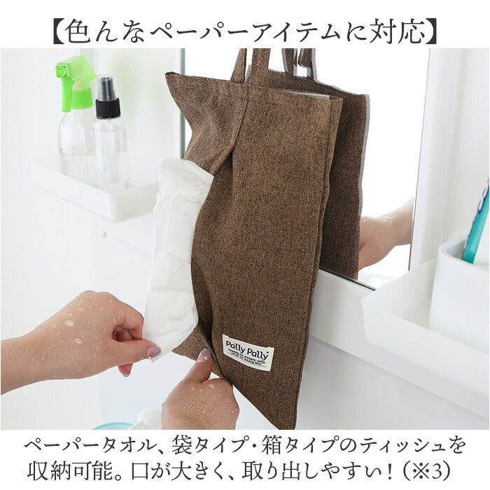 ・ペーパータオル、袋タイプ・箱タイプのティッシュを収納可能。口が大きく、取り出しやすい!