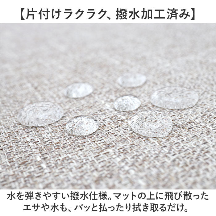 ・水を弾きやすい撥水仕様。マットの上に飛び散ったエサや水も、パッと払ったり拭き取るだけ。
