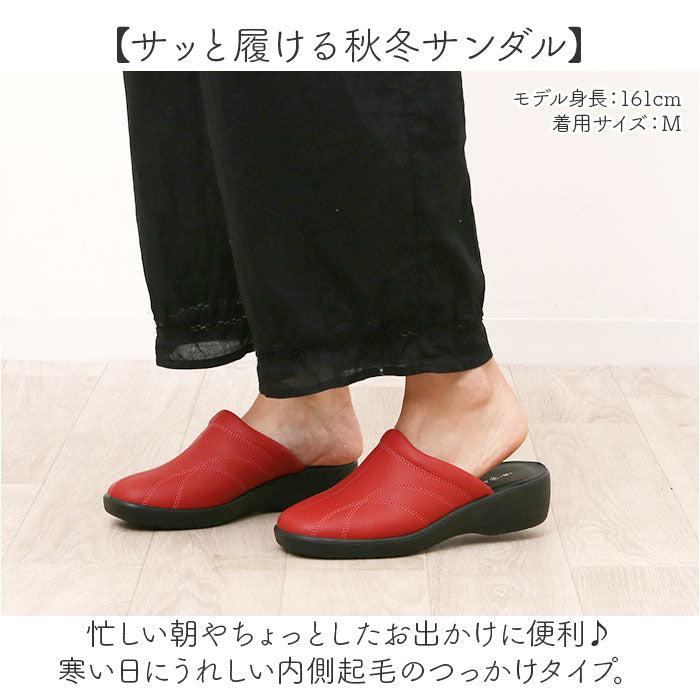 ・忙しい朝やちょっとしたお出かけに便利♪寒い日にうれしい内側起毛のつっかけタイプ。