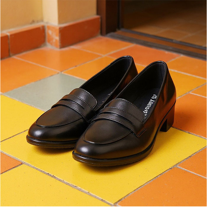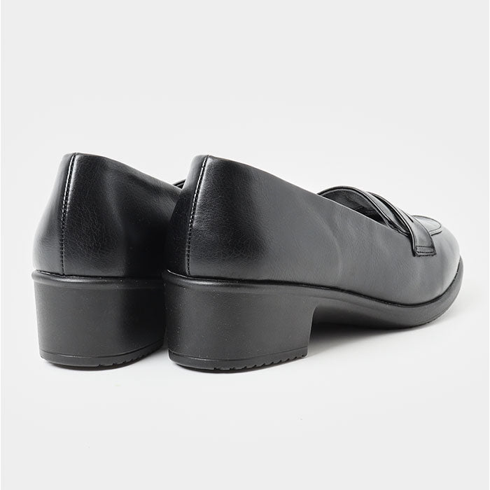 ・上品なツヤ感を出し、ヒールもプラスしたローファー。足あたりがソフトな日本製。