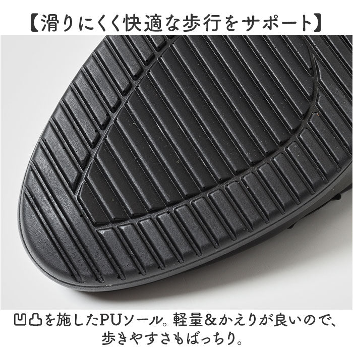 ・アッパー部分に、ソフトなストレッチ合皮を使用。足の動きに馴染み、疲れを軽減◎