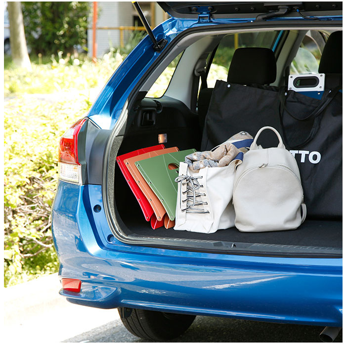 ・500mlペットボトル1本ほどの軽さで、折り畳めば厚さは約3cm。大きめのトートバッグにすっぽり収まり、そのままでも運びやすい持ち手付き。収納も省スペース!