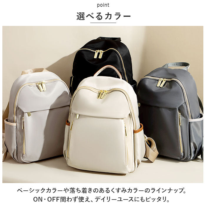 ・フロントやバックにファスナーポケットを多数配置し、整理整頓しながら収納でき実用性◎