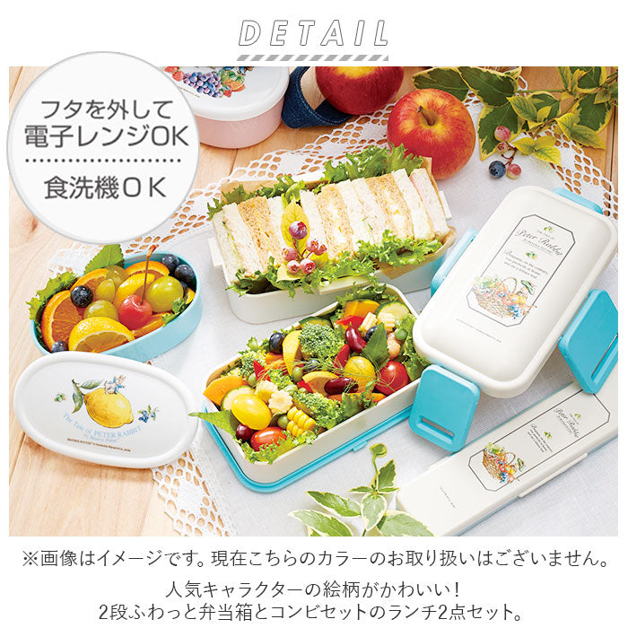 ・人気キャラクターの絵柄がかわいい!2段ふわっと弁当箱とコンビセットのランチ2点セット。