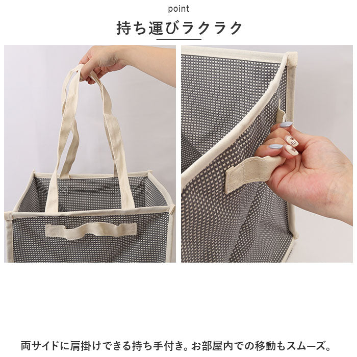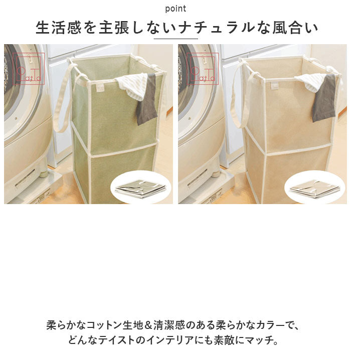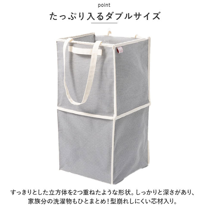 ・すっきりとした立方体を2つ重ねたような形状。しっかりと深さがあり、家族分の洗濯物もひとまとめ!型崩れしにくい芯材入り。