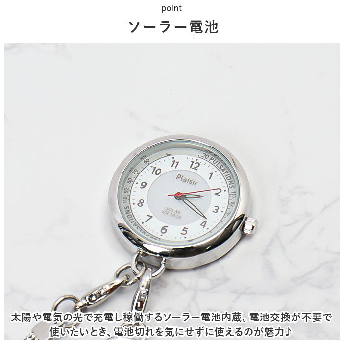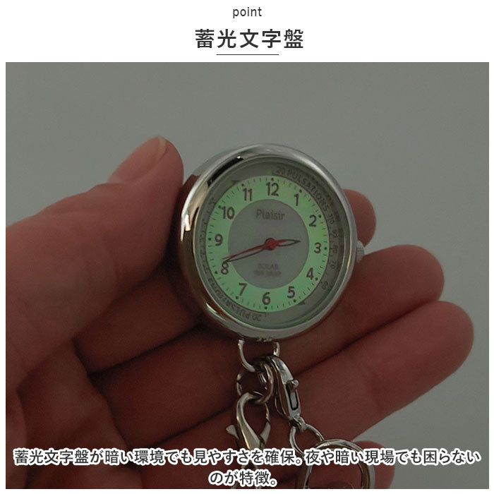 plaisir 時計 通販 懐中時計 チェーンウォッチ ナースウォッチ ソーラー 3気圧防水 蓄光ダイヤル仕様 プレジール TSS-903 アナログ 3針 キーホルダー ウオッチ ウォッチ シンプル