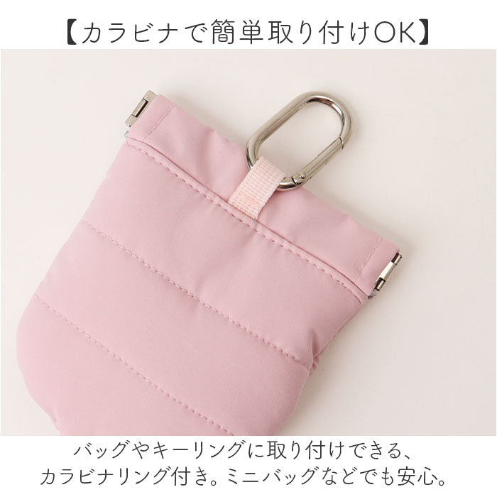 ・中綿入りのふんわりパファー素材に、キルティング加工を。薄型で丸みのある手のひらサイズ☆