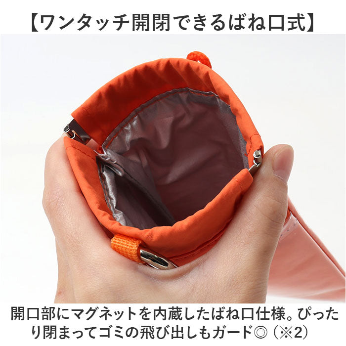 ・開口部にマグネットを内蔵したばね口仕様。ぴったり閉まってゴミの飛び出しもガード◎