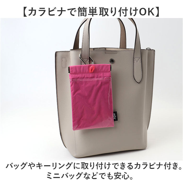・バッグやキーリングに取り付けできるカラビナ付き。ミニバッグなどでも安心。