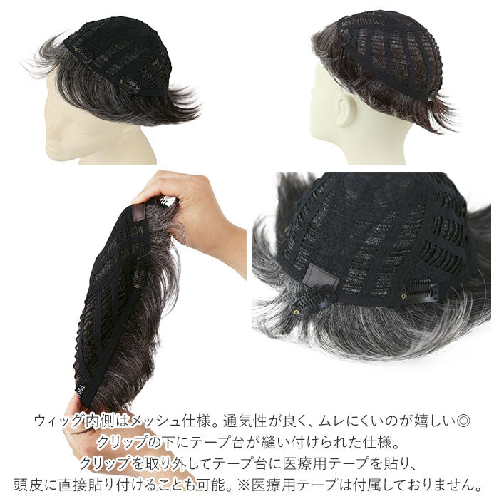・自毛を生かして、頭頂部全体をカバーできる五分タイプのウィッグ。