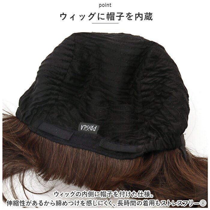 PRISILA プリシラ 帽子ウィッグ ショート 通販 ウィッグ ウイッグ かつら BO-07 医療用ウィッグ 医療用ウイッグ 脱着簡単 被る 伸縮性 やわらかい 柔らかい サイズ調整可