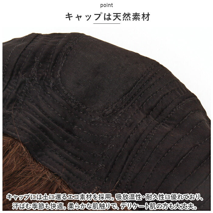 ・ウィッグの内側に帽子を付けた仕様。伸縮性があるから締めつけを感じにくく、長時間の着用もストレスフリー◎