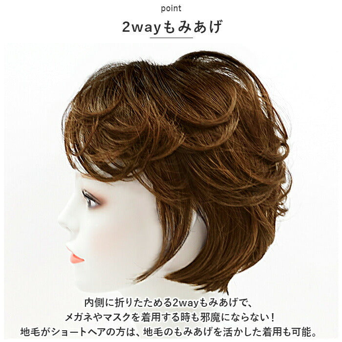 ・内側に折りたためる2wayもみあげで、メガネやマスクを着用する時も邪魔にならない!地毛がショートヘアの方は、地毛のもみあげを活かした着用も可能。