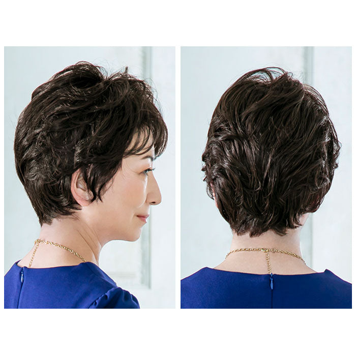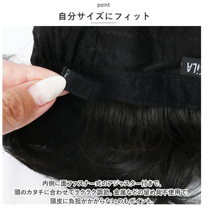 ・帽子をかぶるようにウィッグをかぶって、落ち着いた印象の軽やかなショートヘアに♪誰でも簡単装着できる、帽子ウィッグが登場。