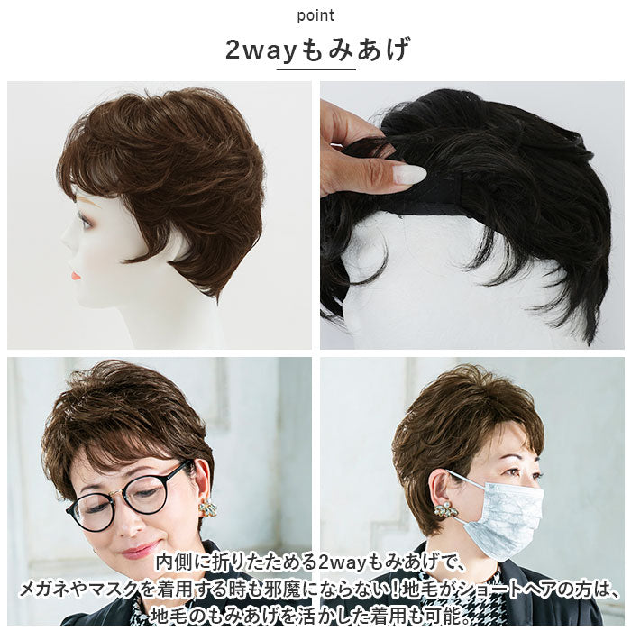 ・内側に折りたためる2wayもみあげで、メガネやマスクを着用する時も邪魔にならない!地毛がショートヘアの方は、地毛のもみあげを活かした着用も可能。