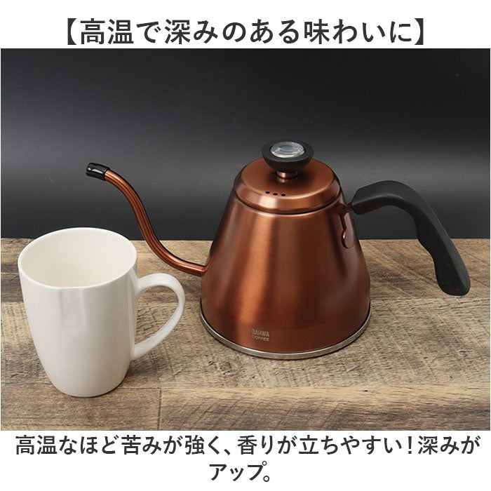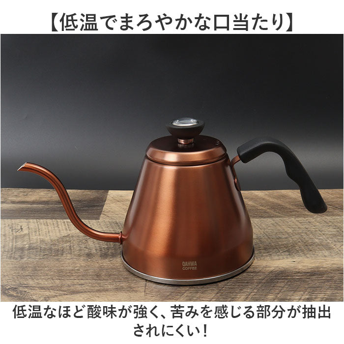 ・お湯の温度で味が変わると言われるほど重要!最適な抽出温度84度~92度を確認できる温度計付き。