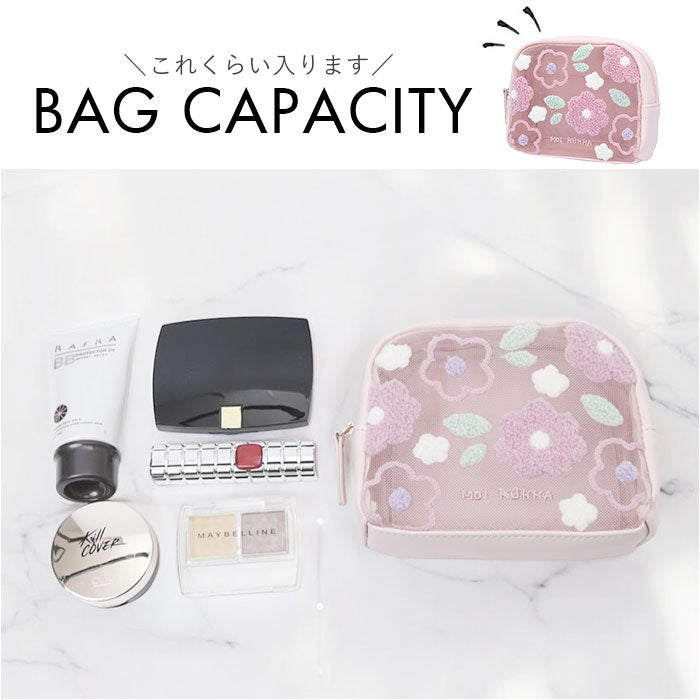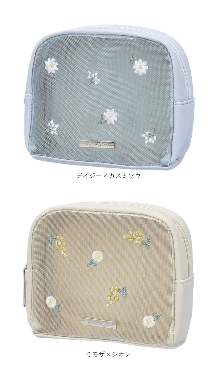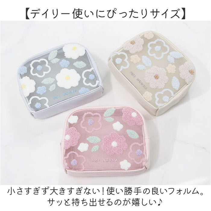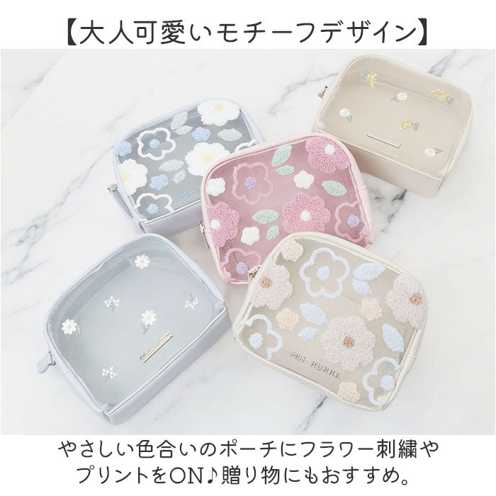 ・やさしい色合いのポーチにフラワー刺繍やプリントをON♪贈り物にもおすすめ。