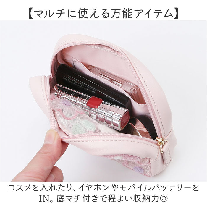 ・コスメを入れたり、イヤホンやモバイルバッテリーをIN。底マチ付きで程よい収納力◎