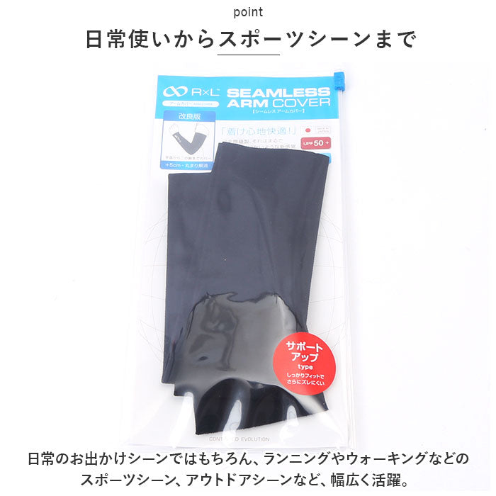 R×L アールエル アームカバー 通販 シームレスアームカバー シームレス サポート 長さ調節可 縫い目なし サポートアップType ユニセックス メンズ レディースUVカット リフレクター反射