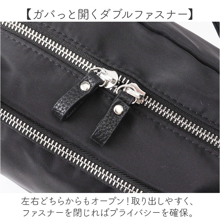 ・左右どちらからもオープン!取り出しやすく、ファスナーを閉じればプライバシーを確保。
