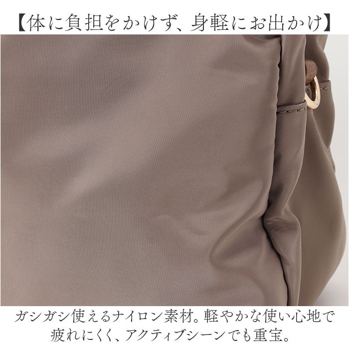 ・ガシガシ使えるナイロン素材。軽やかな使い心地で疲れにくく、アクティブシーンでも重宝。