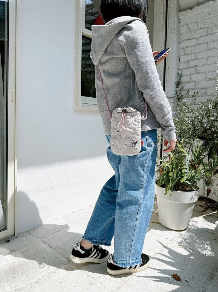 ・丈夫なナイロン生地に、スヌーピーのシルエットのキルティング加工を施しました。