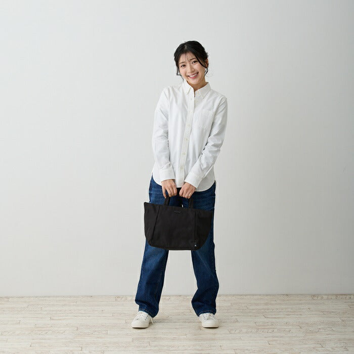 ・幅広マチで、B5ノート、ボトル、スマートフォン、折り畳み傘、