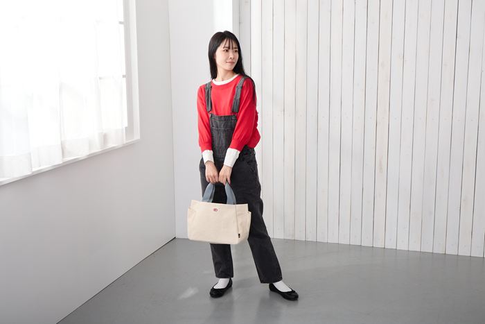 ・片側に寄せて全体のスペースを広く使うこともできます。底マチが広く、ランチボックスなども入ります。