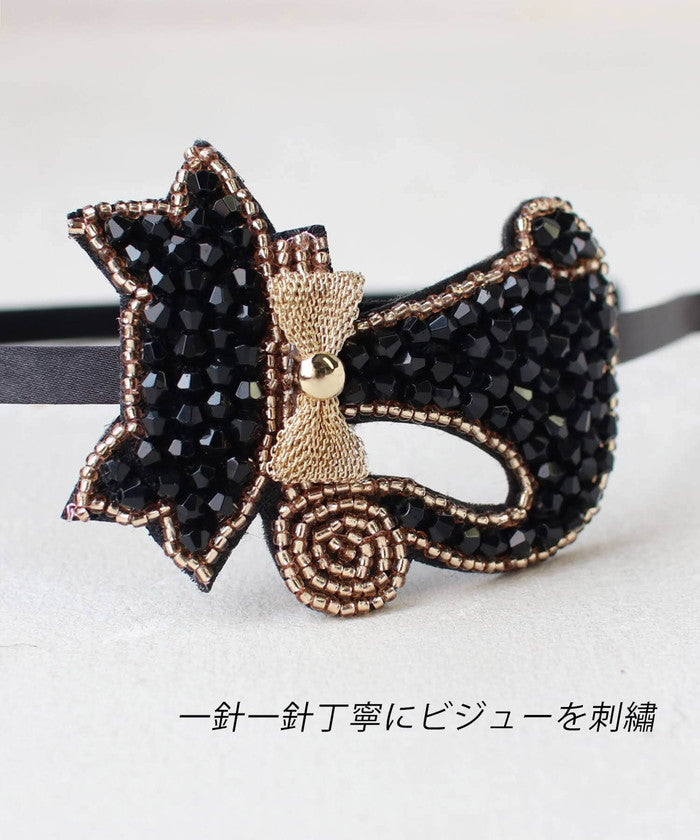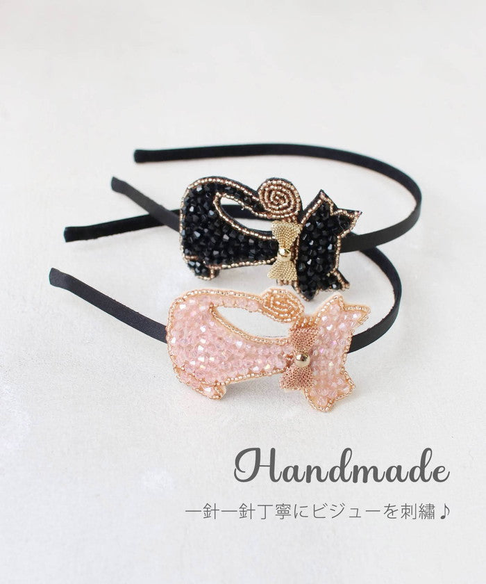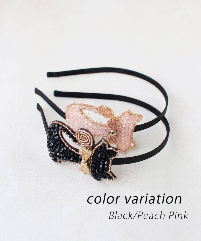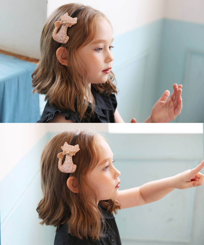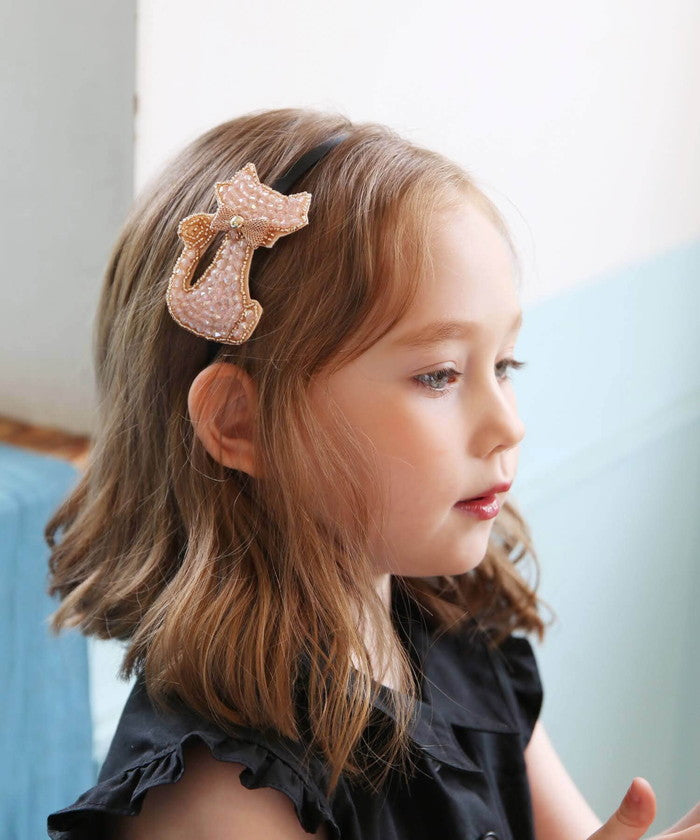 ・一針一針丁寧にビジューを猫ちゃんの 形を刺しゅうした子供服Roraネーコカチューシャ☆