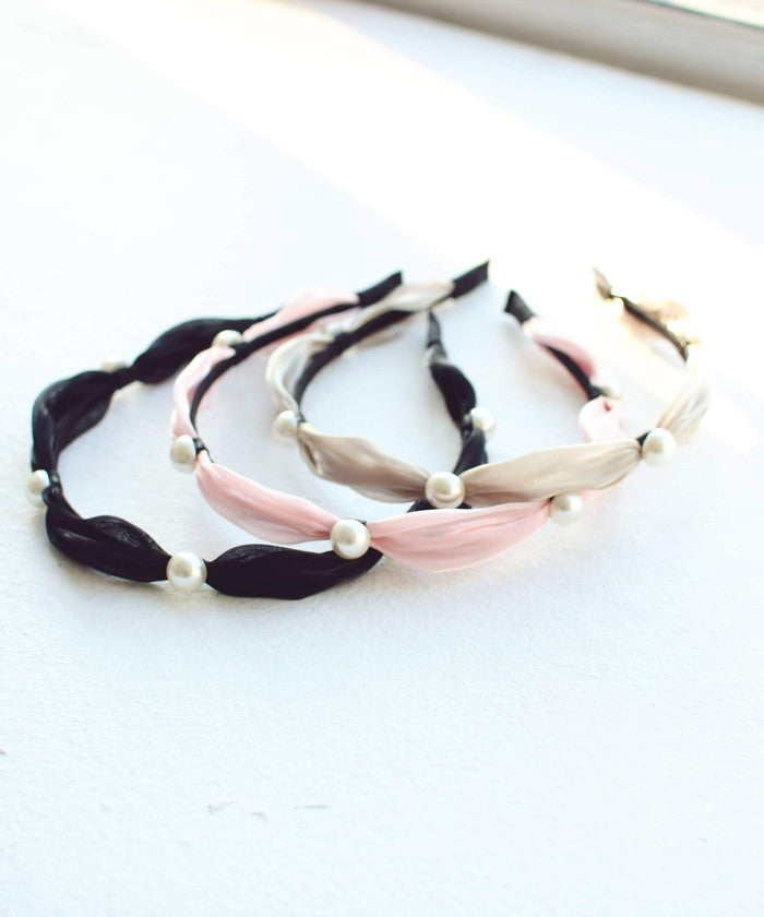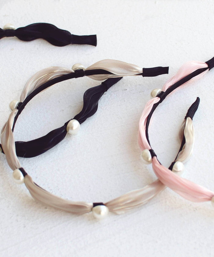 ・シアー生地と等間隔にあしらったパールデザインで上品さが増す。