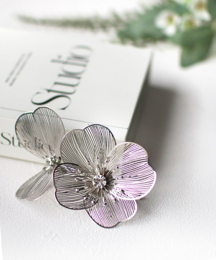 ・グラシアヘアクリップは、繊細な花びらとラインストーンが輝く、華やかで上品なヘアアクセサリーです。