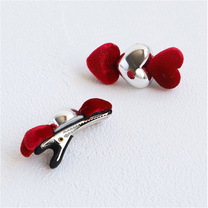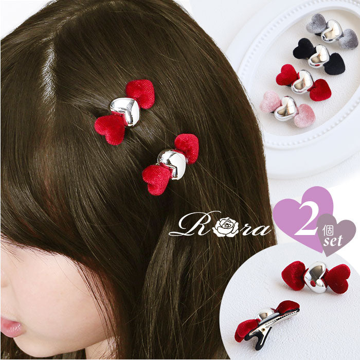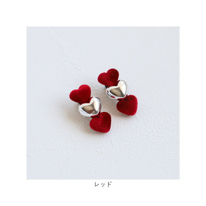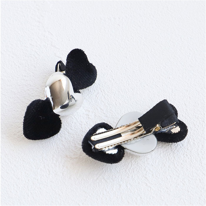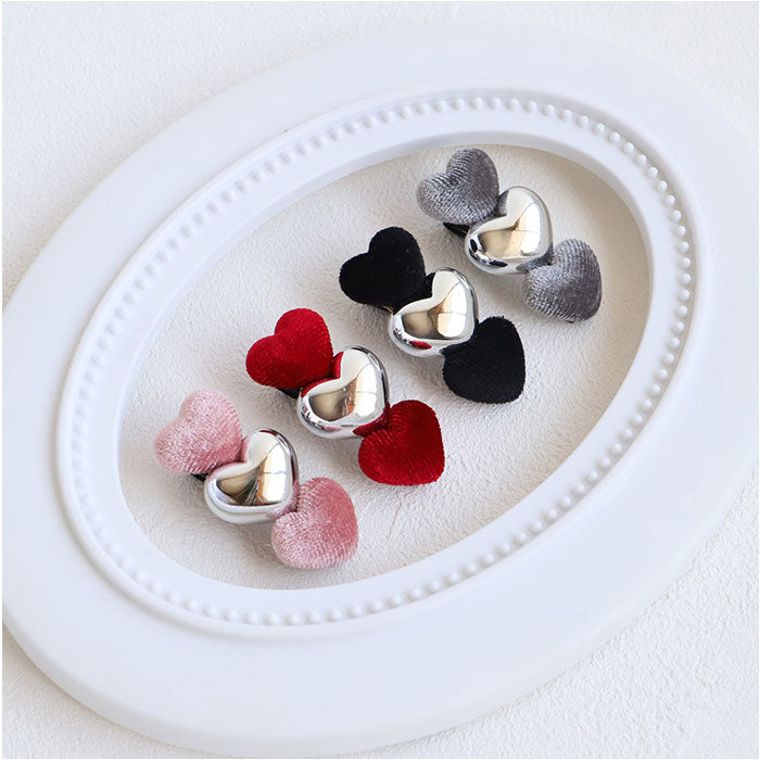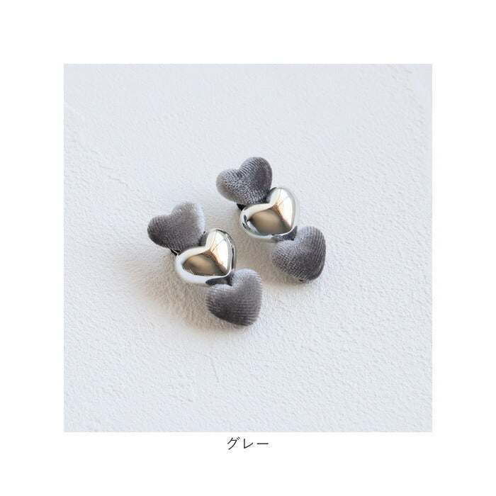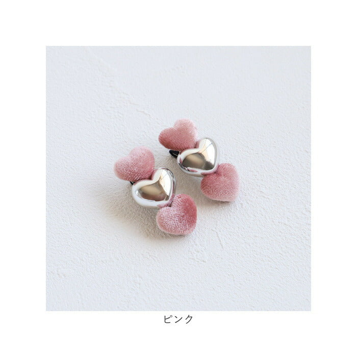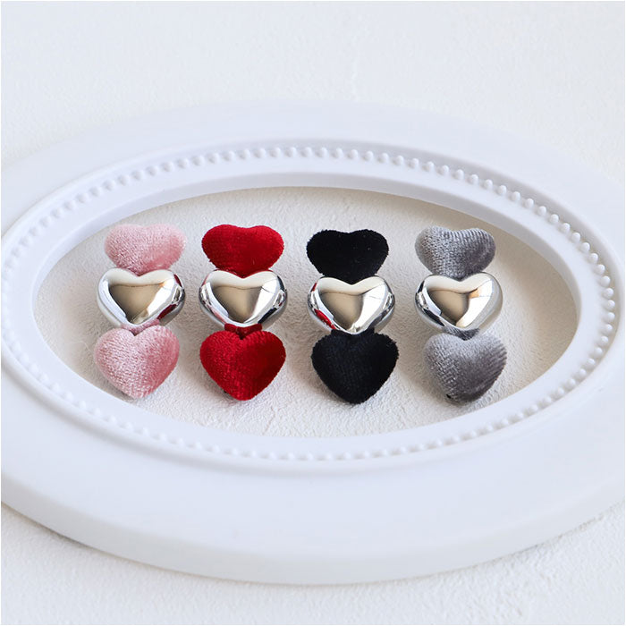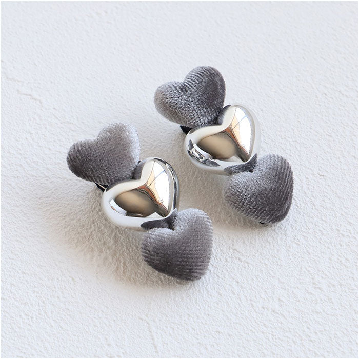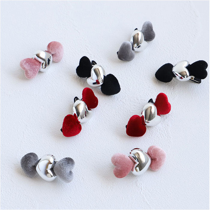 ・起毛生地と、シルバーのハートを3つ並べたデザイン♪位置を変えて付けられる2個セット。
