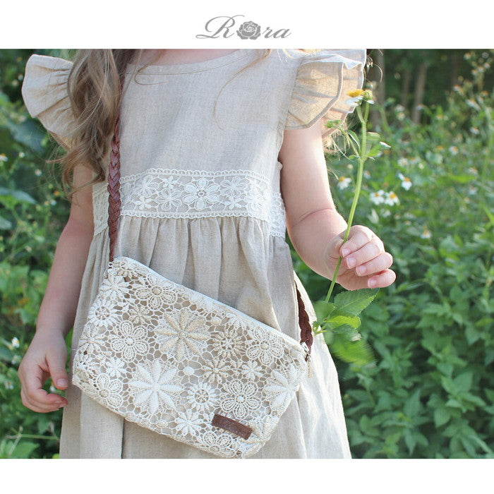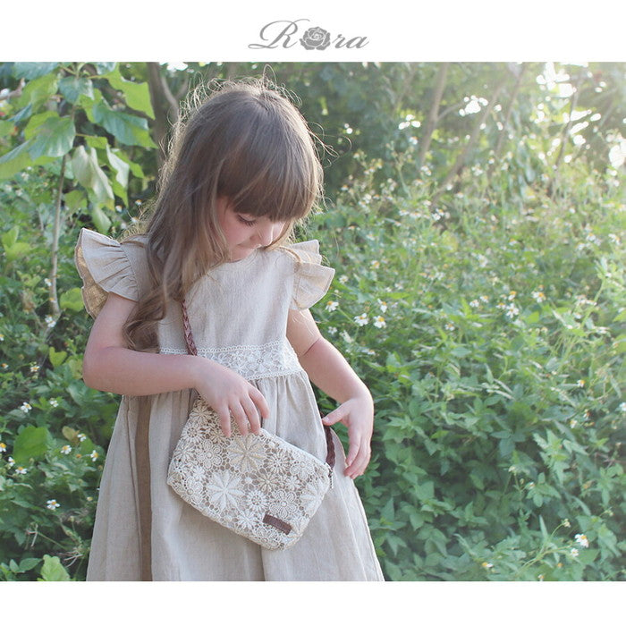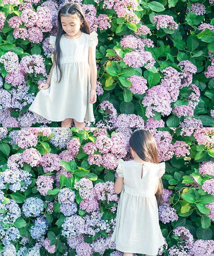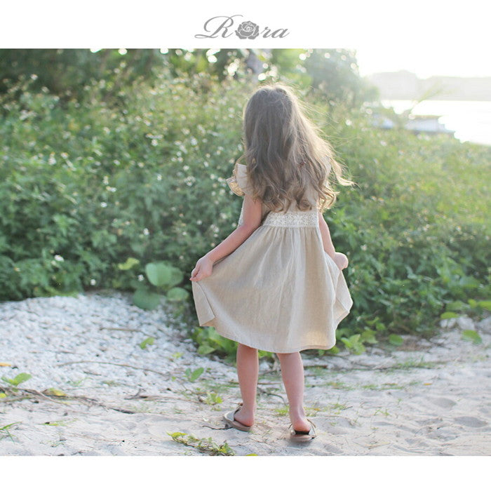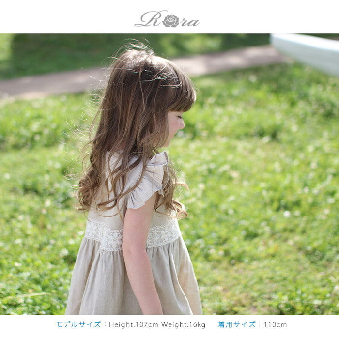 Rora ワンピース キッズ 通販 ローラ リネンワンピース ノエル 半袖 フリル レース 無地 コットンリネン 綿麻 夏服 夏 カジュアル ナチュラル かわいい おしゃれ 女の子 女子 子供 子ども