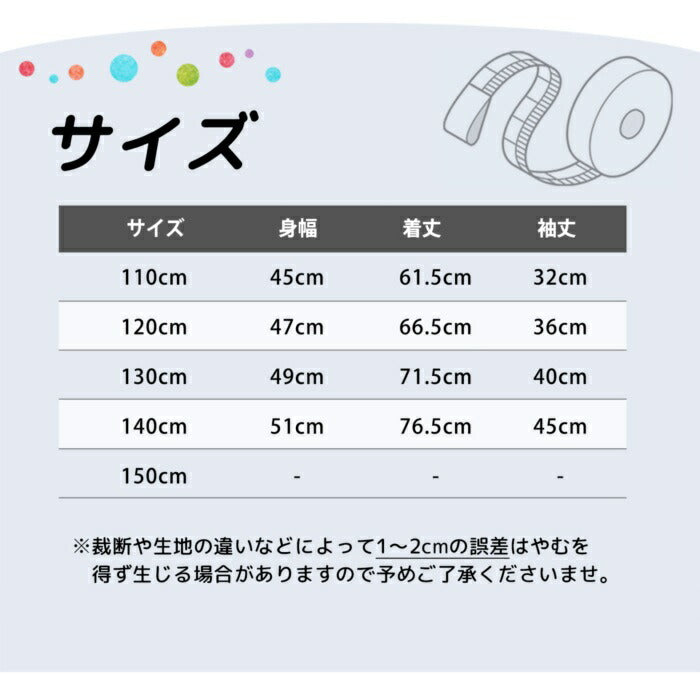 【140cm】着丈:76.5cm/身幅:51cm/袖丈:45cm