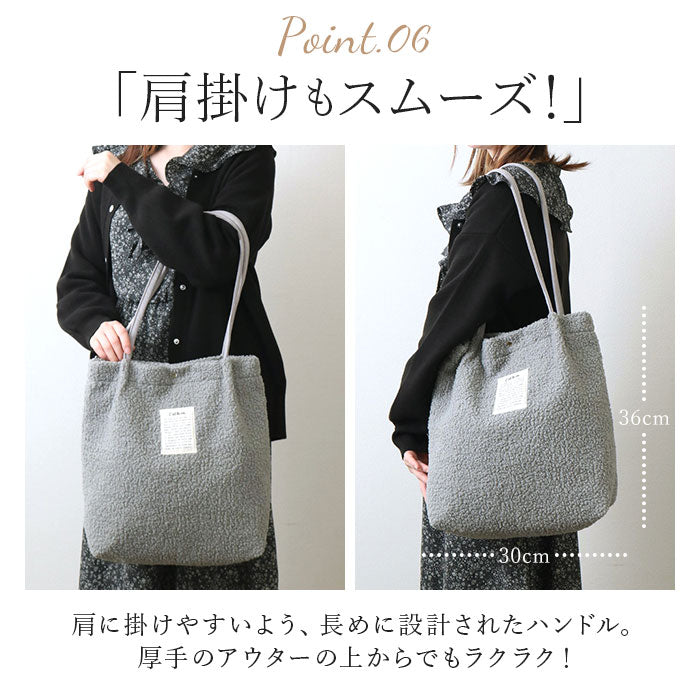 ・肩に掛けやすいよう、長めに設計されたハンドル。厚手のアウターの上からでもラクラク!