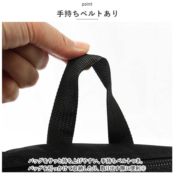 ・バッグをサッと持ち上げやすい、手持ちベルトつき。バッグを引っかけて収納したり、取り出す際に便利◎