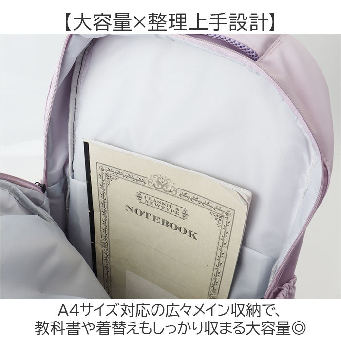 ・A4サイズ対応の広々メイン収納で、教科書や着替えもしっかり収まる大容量◎