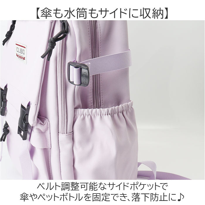 ・ベルト調整可能なサイドポケットで傘やペットボトルを固定でき、落下防止に♪