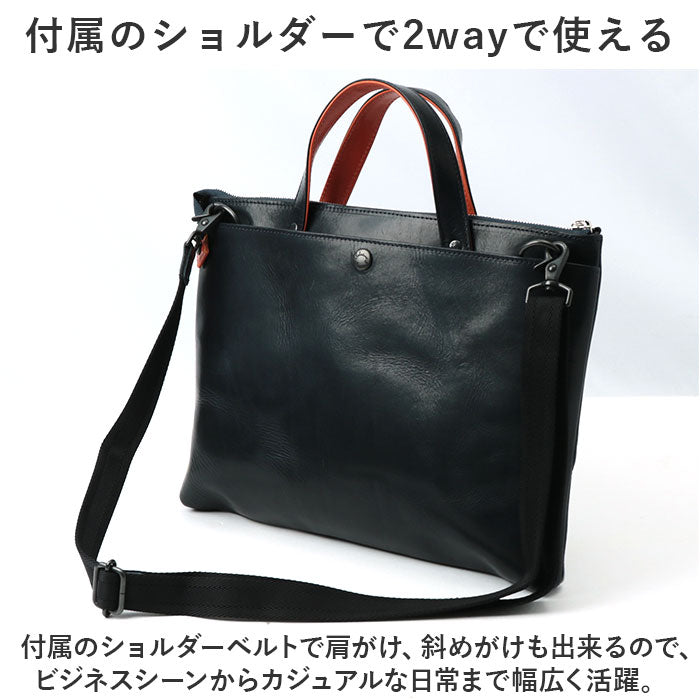 ・付属のショルダーベルトで肩がけ、斜めがけも出来るので、ビジネスシーンからカジュアルな日常まで幅広く活躍。