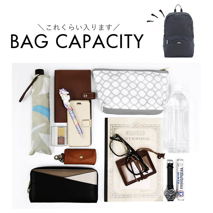 ・A4がすっぽり。薄手の着替えやポーチなども入る容量約13L、耐荷重は約8kg。