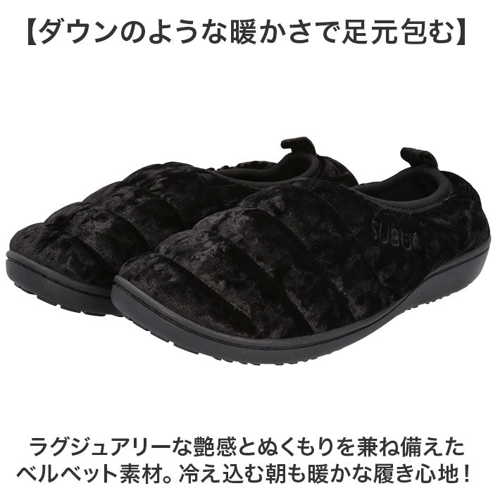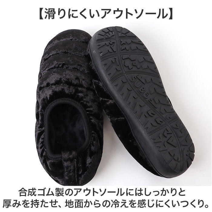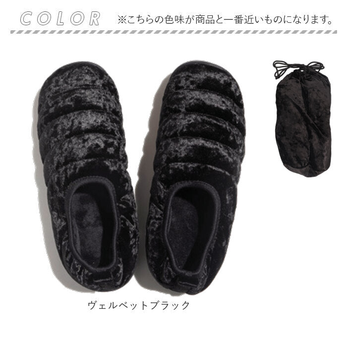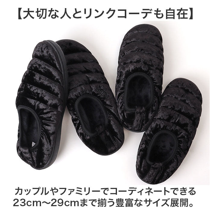 ・ラグジュアリーな艶感とぬくもりを兼ね備えたベルベット素材。冷え込む朝も暖かな履き心地!