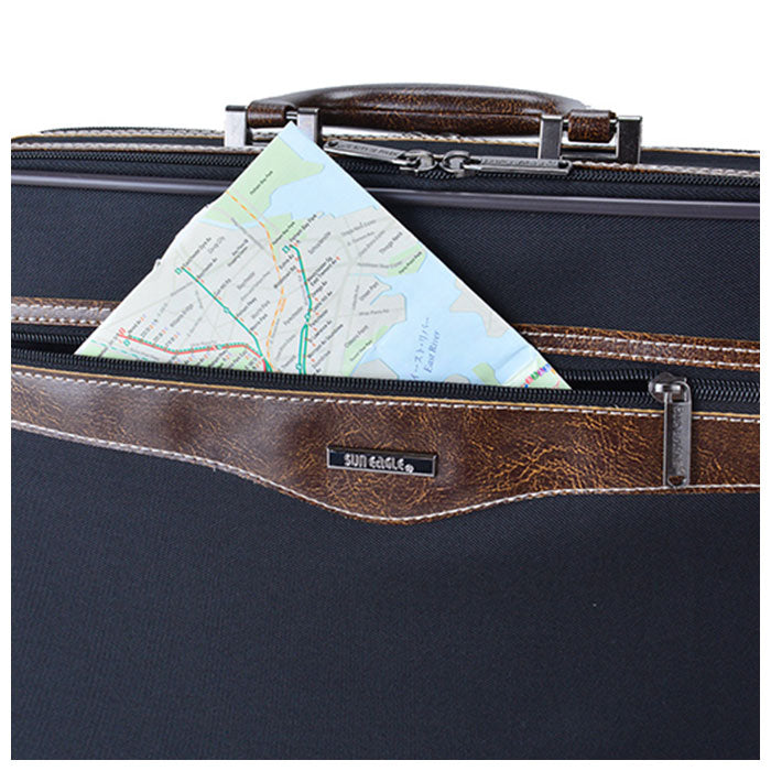 ・ブラックを基調にした端正なフォルムに、ブラウンのフェイクレザーがアクセントになったアタッシュケースタイプのビジネスバッグ。